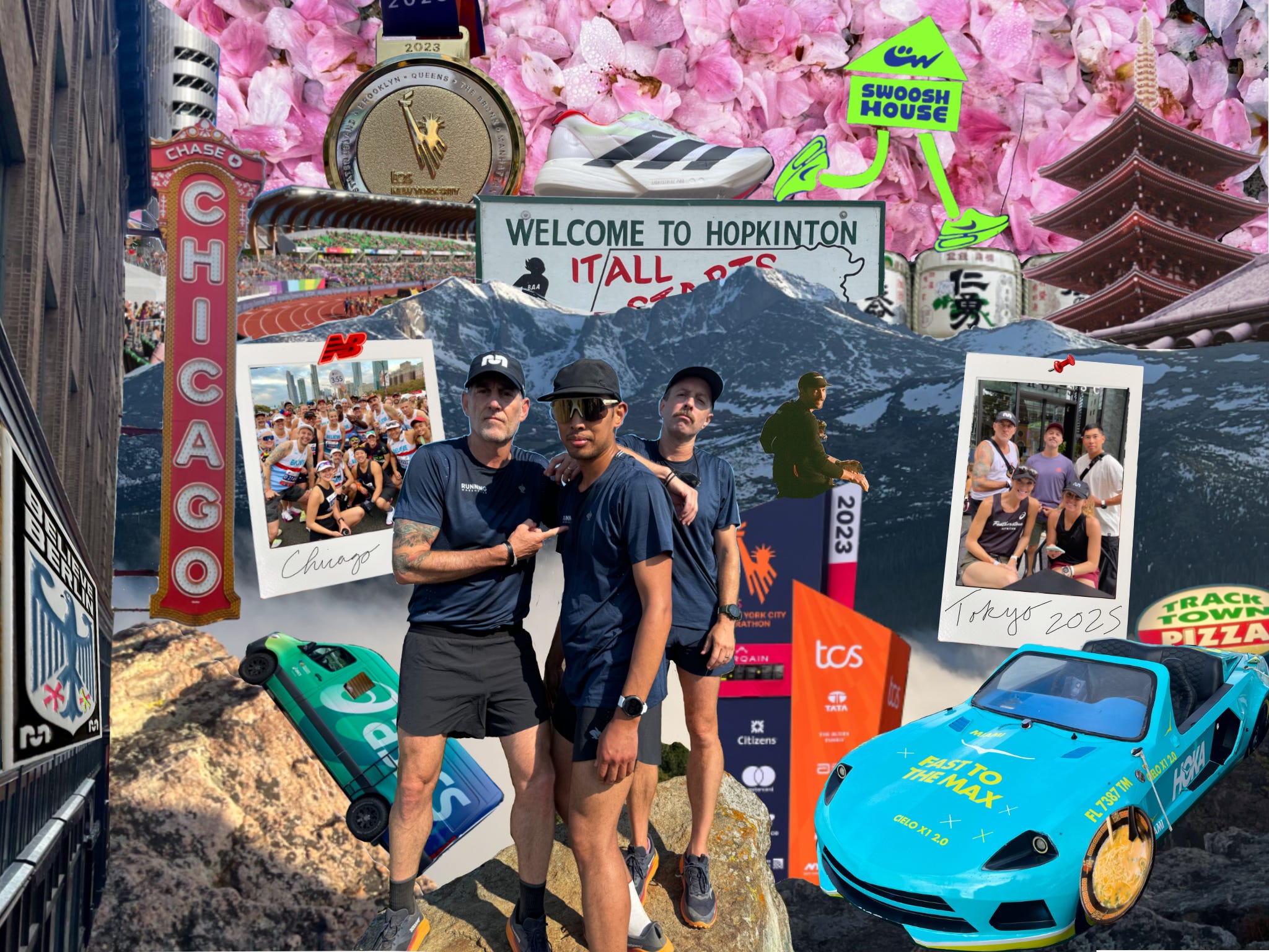 Surely I never imagined that I’d be in the front row at hallowed Hayward Field for the World Athletics Championships, watching Jamaican legends Shelly-Ann Fraser-Price and Shericka Jackson fly past in the blink of an eye. Or in Tokyo for the same event as Mondo Duplantis broke the world record in the pole vault. I couldn’t believe I’d see Sydney McLaughlin run the track at the Paris Olympics and share an Uber ride with Deena Kastor. Never did I dream that I’d run the New York City Marathon three times, the Boston Marathon twice, and the Berlin, Chicago, and Tokyo Marathons once. It’s absurd that we recorded a podcast with Hoka, on a yacht, in Miami, at sunset. Or that I teamed up with Fractel to release my own signature Legionnaire hat that would quickly sell out. That’s fever dream territory.