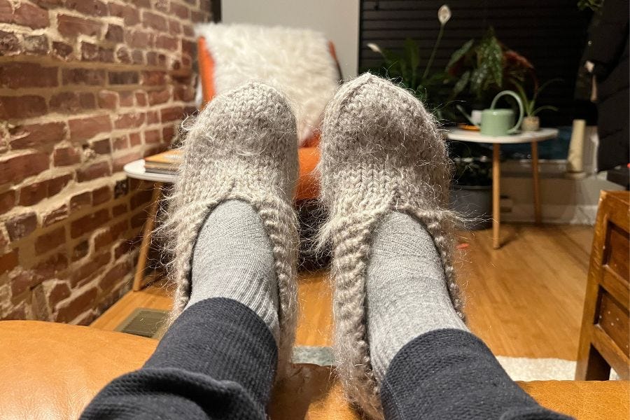 In any case, I’ve had them for a few years, but was never sure when to wear them. They seemed so fragile and were indeed. I finally wore them this year, and I have to say, they’re pure luxury. An extra layer over socks have kept my feet warm and toasty over the past month and a half. It all came together even more perfectly after receiving a pair of Crocs that were a half-size too big. Put on the reindeer slippers, and all the gaps were filled, meaning I had a real Frankenstein of a footwear ensemble: merino wool socks, an outer layer of reindeer hair, all Russian dolled inside a pair of Realtree camo Crocs.