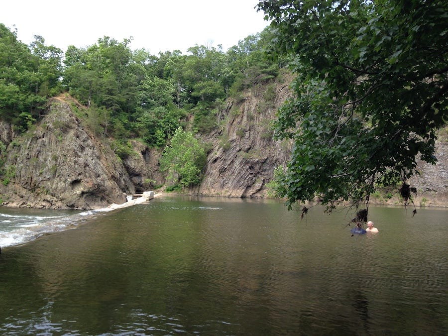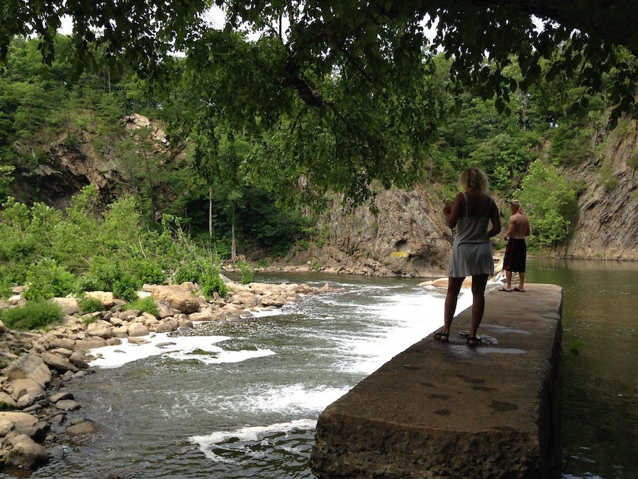 We had a place in West Virginia, right outside Berkeley Springs. It was in the summertime, it was a perfect day, and we were looking for a place to swim and drink some beers. At one point, we made a stop in town to get coffee, and got the details on a nearby swimming hole. It was a nice place to swim, but pretty tame altogether. I struck up a conversation with a local kid and asked him if he knew of any good places to swim or cliff jump, since I’ve always found that cliff jumping spots are best discovered by way of mouth.